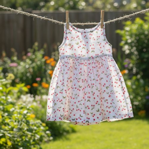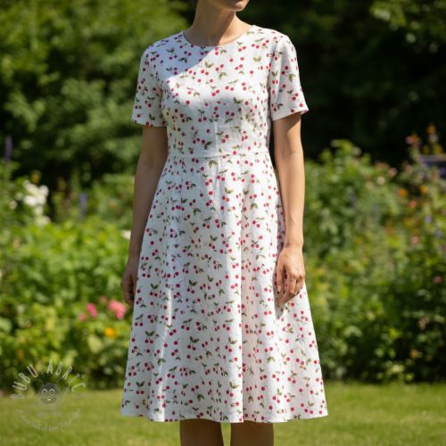 Dvoslojna gaza/muslin Cherries white digital print