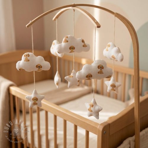 Dvoslojna gaza/muslin Dogs white digital print