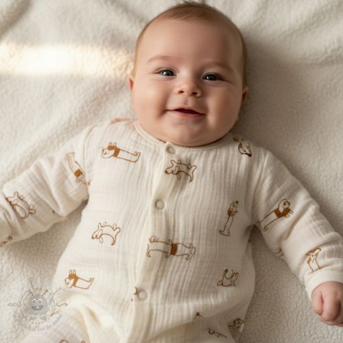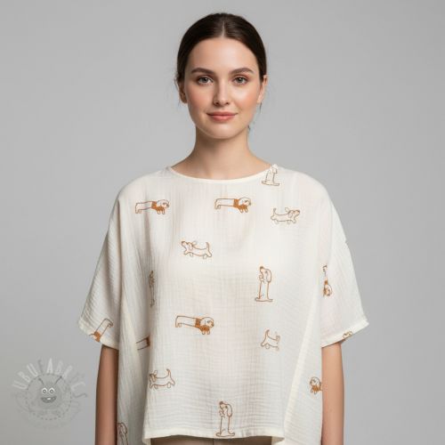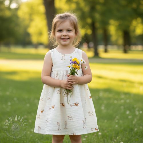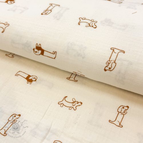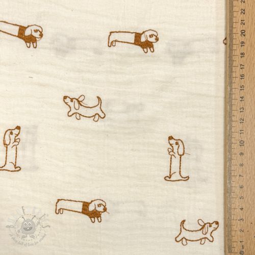Dvoslojna gaza/muslin EMBROIDERY Dogs ecru