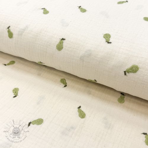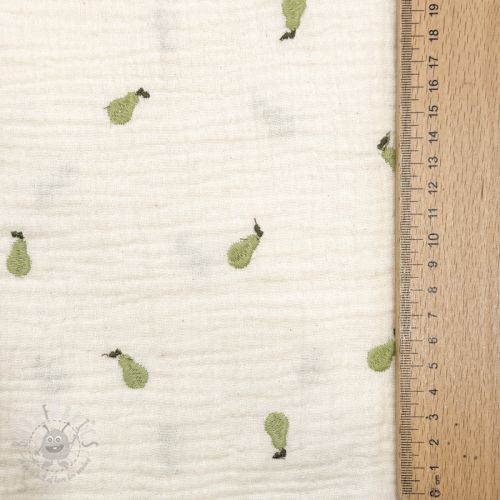 Dvoslojna gaza/muslin EMBROIDERY Fruit green SIMPLY NATURAL
