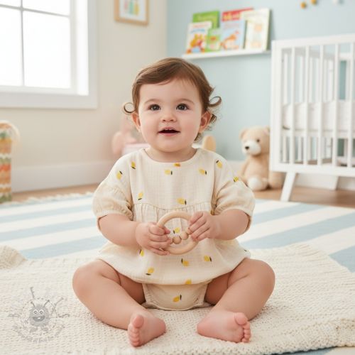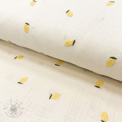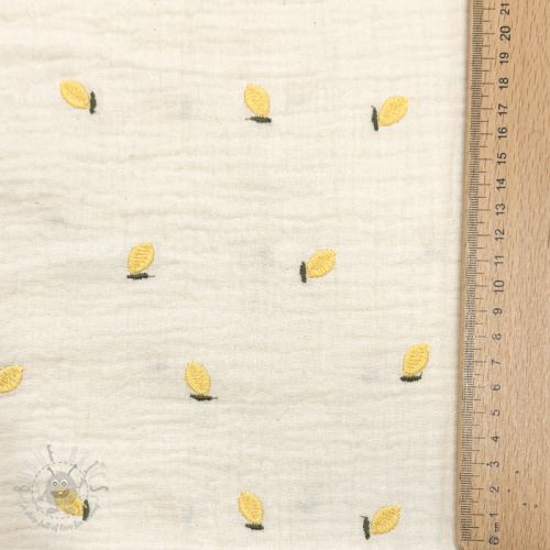 Dvoslojna gaza/muslin EMBROIDERY Fruit natural yellow