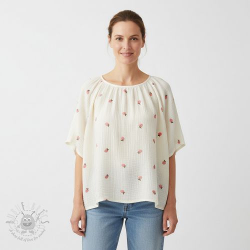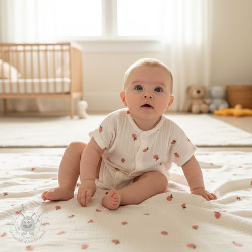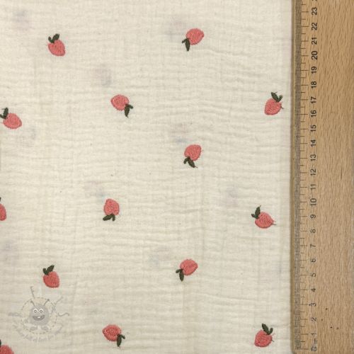 Dvoslojna gaza/muslin EMBROIDERY Fruit peach SIMPLY NATURAL