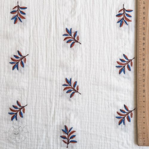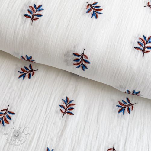 Dvoslojna gaza/muslin EMBROIDERY Leaves white