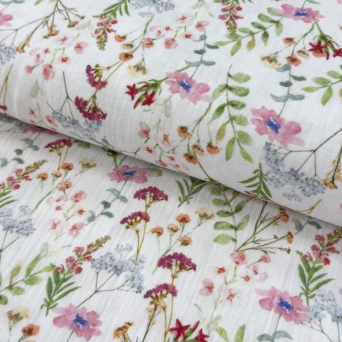Dvoslojna gaza/muslin Flower Sabrina white digital print