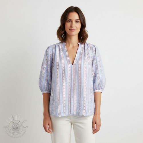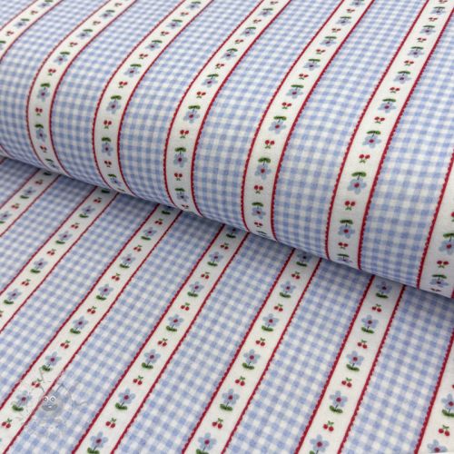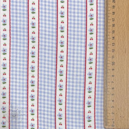 Dvoslojna gaza/muslin Flowers check blue digital print