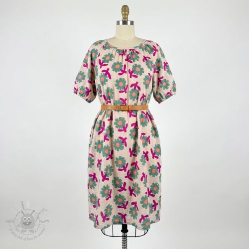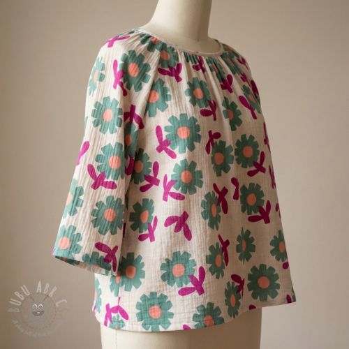 Dvoslojna gaza/muslin Flowers natural/pink by JENNIFER BOURON ORGANIC
