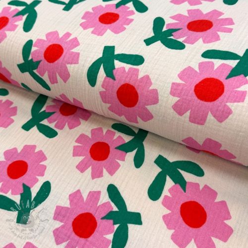 Dvoslojna gaza/muslin Flowers pink by JENNIFER BOURON ORGANIC