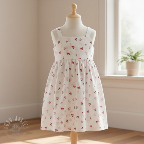 Dvoslojna gaza/muslin Fruits cherry soft rose