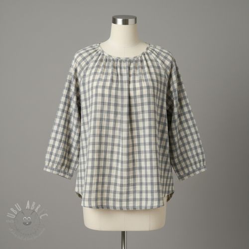 Dvoslojna gaza/muslin LINEN YARN DYED Checks grey natural