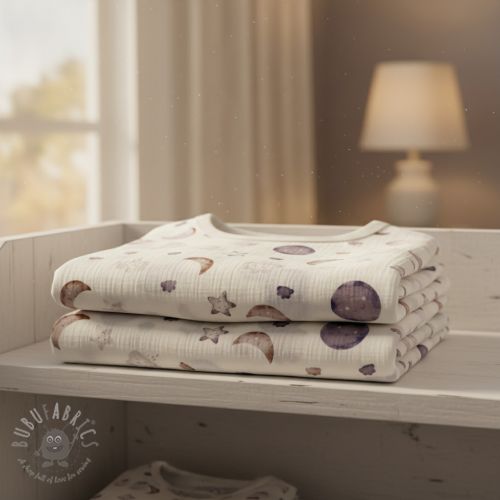 Dvoslojna gaza/muslin Moon white digital print ORGANIC