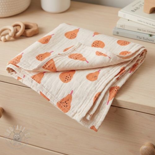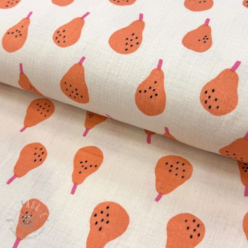 Dvoslojna gaza/muslin Pears peach by JENNIFER BOURON ORGANIC