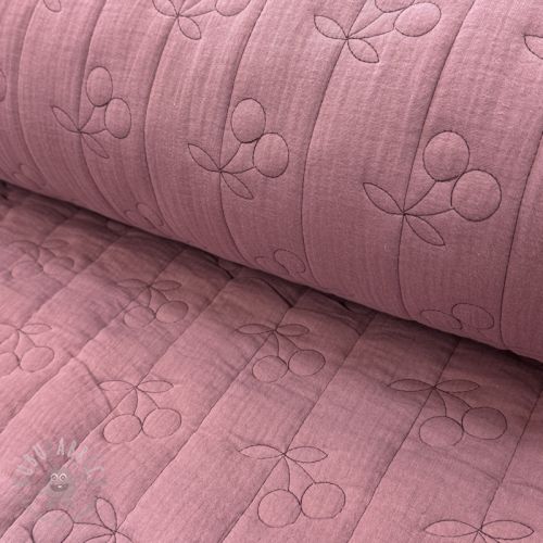 Dvoslojna gaza/muslin STEPPED Cherries mauve