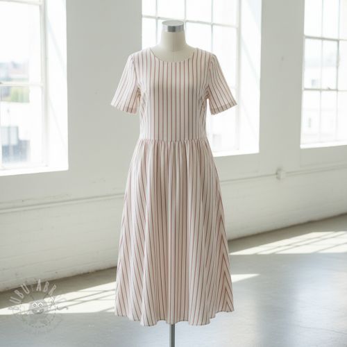 Dvoslojna gaza/muslin YARN DYED Thin strip beige