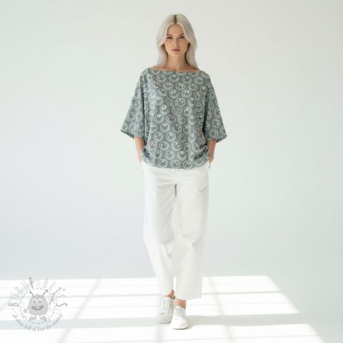 Jersey Happy faces square sage digital print