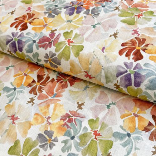 Lan z bombažem Aquarel leaves RAMIE purple digital print