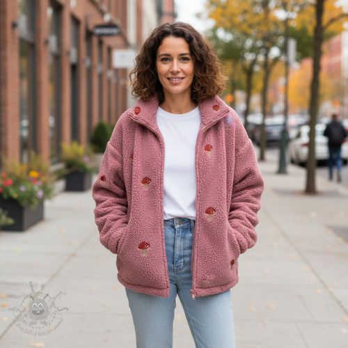 Plaščevina EMBROIDERY Little mushrooms old pink