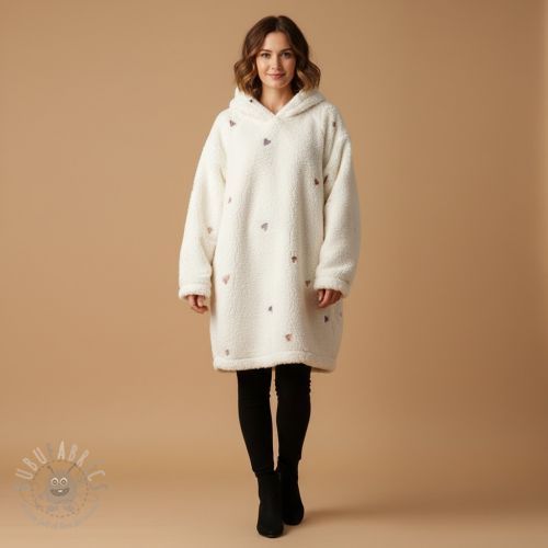 Plaščevina TEDDY EMBROIDERY Hearts ecru