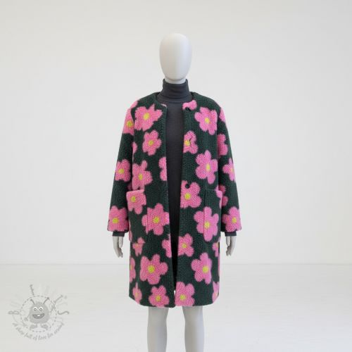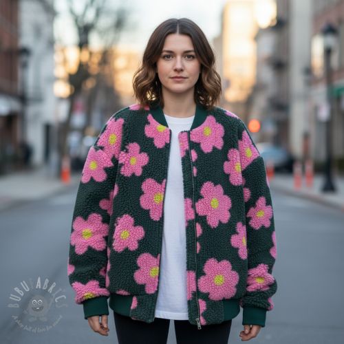 Plaščevina TEDDY JACQUARD Flowers army green/pink