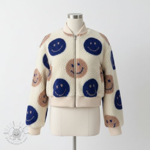 Plaščevina TEDDY JACQUARD Happy faces jeans