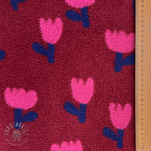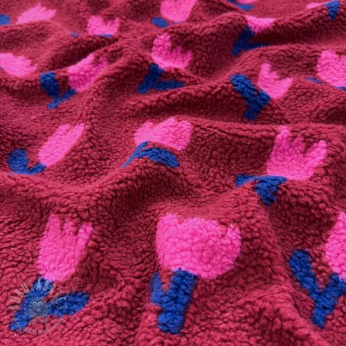 Plaščevina TEDDY JACQUARD Tulips dark red