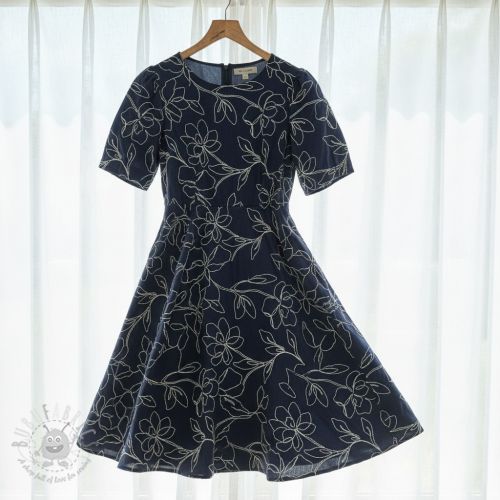 Viskoza z lanom EMBROIDERY Flower Danielle navy