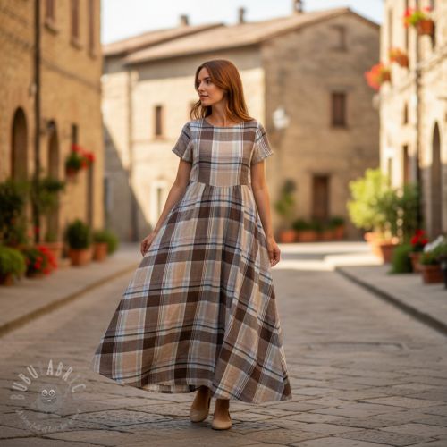 Viskoza z lanom YARN DYED Checks taupe