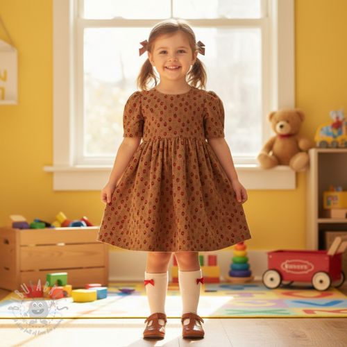 Žamet STRETCH Little strawberries taupe